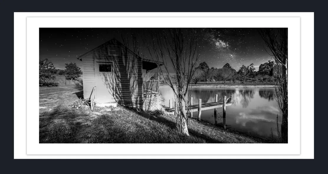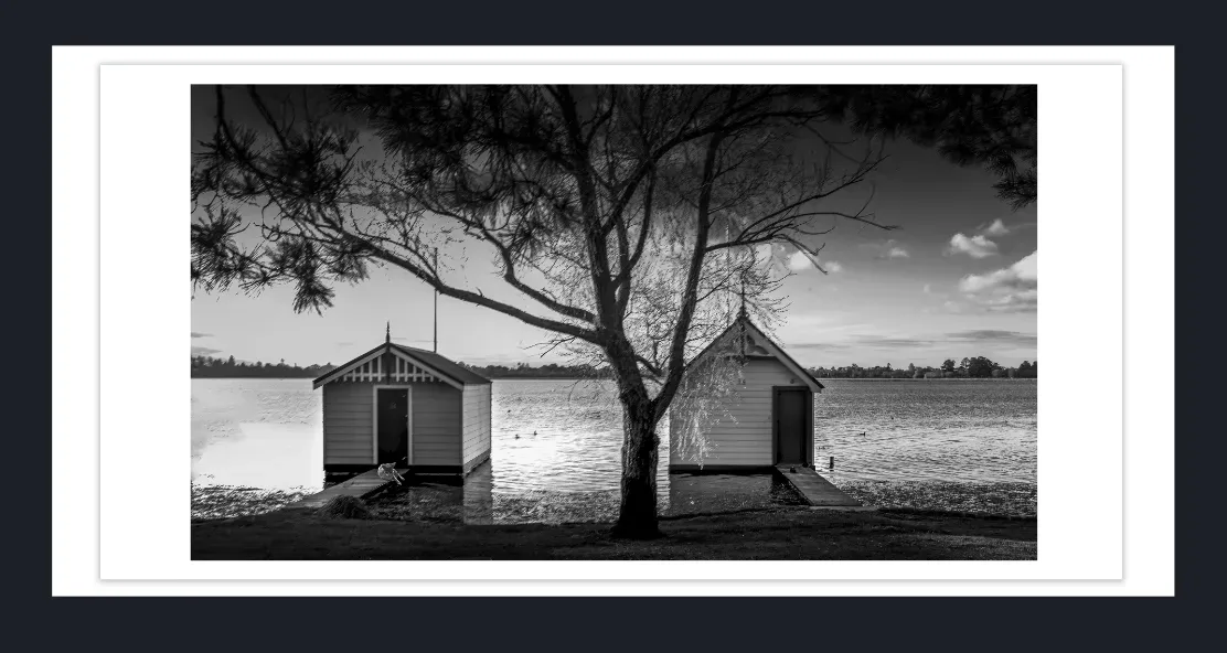 Jetty photography prints Australia | Black and white jetty fine art photography | Boathouse photography prints | Fine art jetty photography signed limited editions